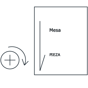 La pieza se fija a la mesa de la máquina, entonces la mesa debe moverse en el mismo sentido de giro de la herramienta.