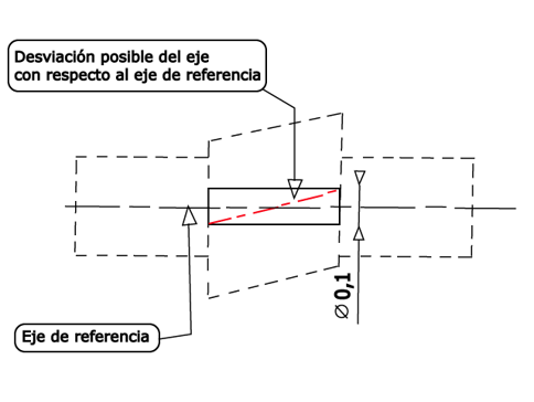 Se observa el acotado del eje con un símbolo de tolerancia geométrica de rectitud con respecto al diámetro de la pieza, la máxima desviación de concentricidad del eje del cilindro es de:0,2mm. |